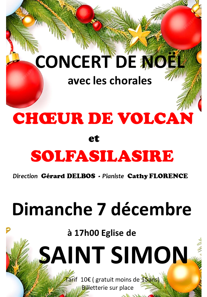 - Chœur de Volcan remercie très chaleureusement les collègues et amis qui ont assisté au concert de St Simon qui fut un succès. Nous étions ravis d avoir une église pleine et participative. La générosité des participants a permis à Chœur de Volcan et Solfasilasire de verser 400€ au telethon.